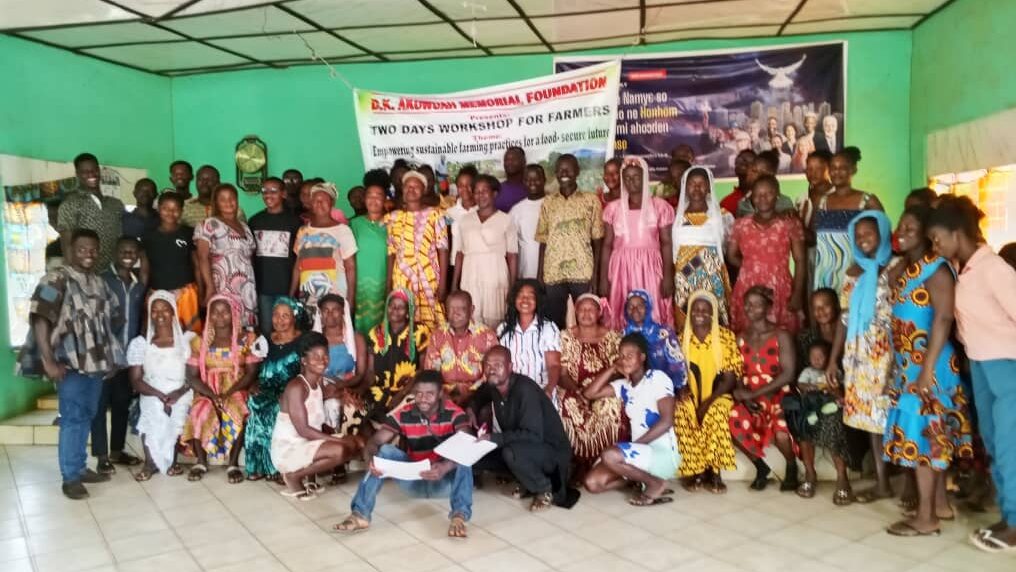 Die Eltern der meisten Schulkinder betreiben selbst kleine Familienfarmen, das Wissen wird von Generation zu Generation weiter gegeben. Im Februar 2026 nahmen die 52 Mütter und Väter, die auf den Schulfarmen arbeiten, an einem zweitägigen Workshop der ghanaische Foundation DKAMF teil. Um welche Themen ging es dabei?
